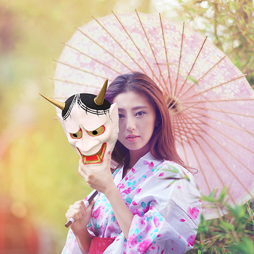 This mask depicts the face of a woman’s vengeful spirit. It turns her hostile desire to avenge a grudge into a work of art.
